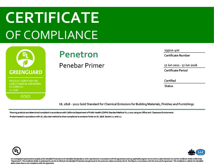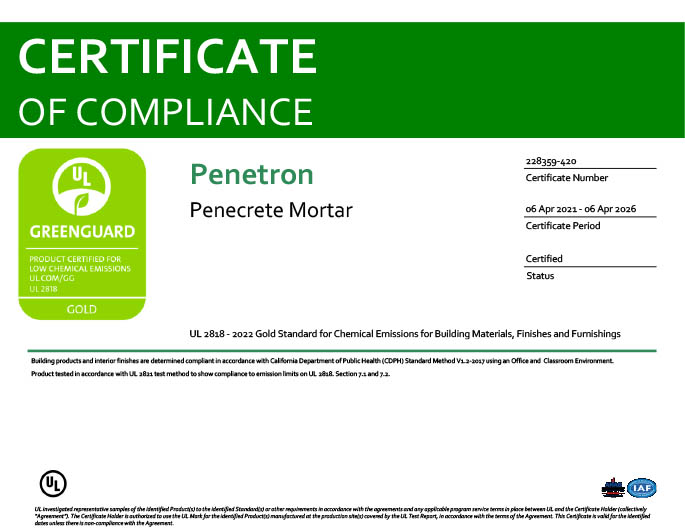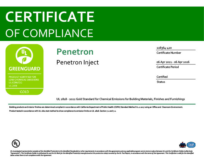 Ο Όμιλος των εταιρειών της PENETRON INTERNATIONAL σε παγκόσμια κλίμακα εναρμονίζεται με τα ισχύοντα συστήματα διασφάλισης ποιότητας, αλλά και με τις υφιστάμενες ανά περιοχή διατάξεις, πιστοποιητικά, συστήματα υγιεινής & ασφάλειας προσωπικού και κάθε απαίτηση προϊόντος, εφαρμογής ή συστήματος. Στο επίπεδο της παραγωγής, οι υψηλές απαιτήσεις ποιοτικού ελέγχου στις υπερσύγχρονες εγκαταστάσεις της PENETRON INTERNATIONAL έχουν κερδίσει την πιστοποίηση ISO 9001:2015 και ISO 14001:2015.