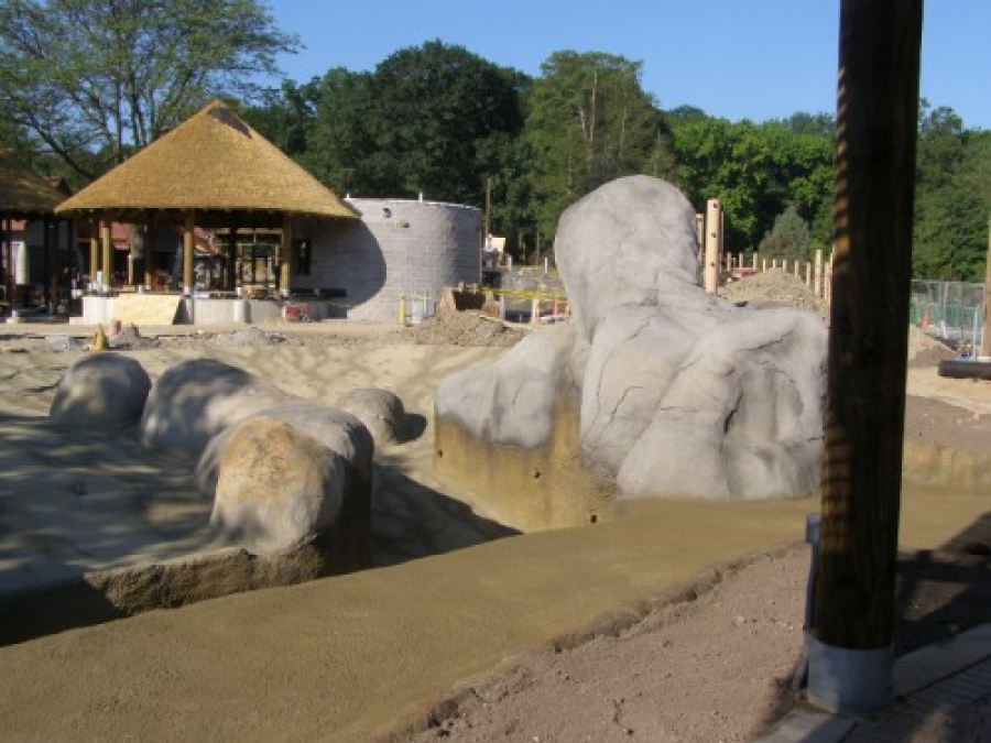 Το σημείο African Elephant Crossing στο Ζωολογικό Κήπο Metroparks του Κλίβελαντ, περιλαμβάνει ως απαραίτητες εγκαταστάσεις μία ρηχή λίμνη, πισίνα και καταρράκτη. Το έργο πιστοποιήθηκε ως "πράσινη" κατασκευή, κατά LEED. Οι περισσότερες από τις κατασκευές περιελάμβαναν υγρές εφαρμογές εκτοξευόμενου σκυροδέματος, απαιτώντας καλό συντονισμό για την τοποθέτηση και την ωρίμανση των συγκεκριμένων στοιχείων.