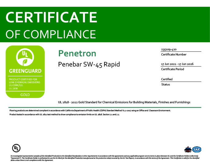 Ο Όμιλος των εταιρειών της PENETRON INTERNATIONAL σε παγκόσμια κλίμακα εναρμονίζεται με τα ισχύοντα συστήματα διασφάλισης ποιότητας, αλλά και με τις υφιστάμενες ανά περιοχή διατάξεις, πιστοποιητικά, συστήματα υγιεινής & ασφάλειας προσωπικού και κάθε απαίτηση προϊόντος, εφαρμογής ή συστήματος. Στο επίπεδο της παραγωγής, οι υψηλές απαιτήσεις ποιοτικού ελέγχου στις υπερσύγχρονες εγκαταστάσεις της PENETRON INTERNATIONAL έχουν κερδίσει την πιστοποίηση ISO 9001:2015 και ISO 14001:2015.
