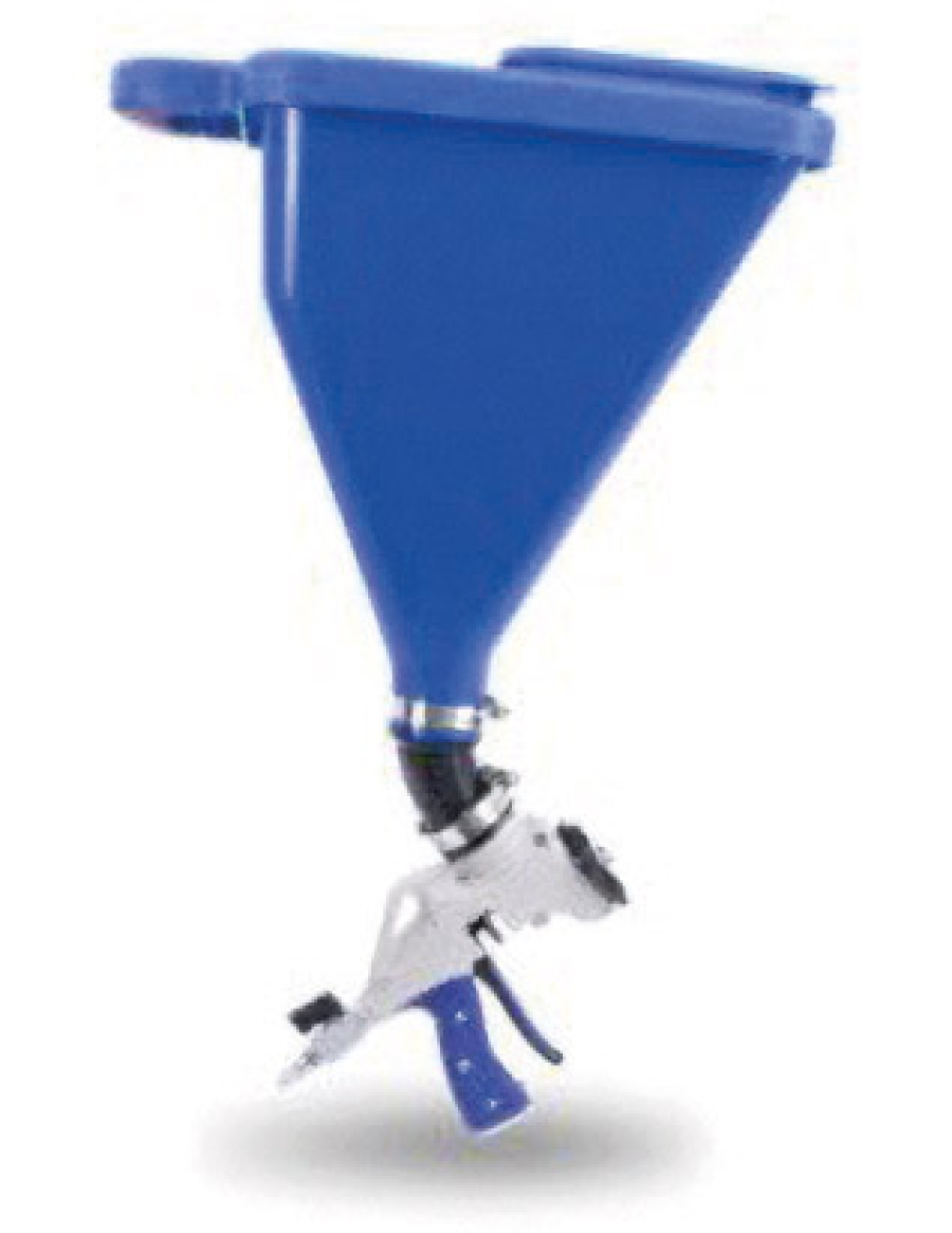 Συσκευή ψεκασμού αμμοκονιάματος. Ένας κοχλίας ρύθμισης επιτρέπει πλήρη έλξη της σκανδάλης σε οποιεσδήποτε ρυθμίσεις ψεκασμού, επίσης υπάρχουν σημάδια και στις δύο πλευρές του ψεκαστήρα, για να υποδεικνύουν τη ρύθμιση της παροχής. Είναι εξοπλισμένο με δοχείο χωρητικότητας 7,5 λίτρων.